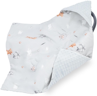 Einschlagdecke Babyschale Decke Kinderwagen 90x90 cm - universal Baby Babydecke für Buggy Autositz Winter Baumwolle Minky Hirsch Hellgrau
