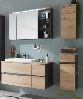 Badezimmer-Set >Memphis< (4-tlg. ) Grau / Artisan Eiche Dekor - 160x176x53 (BxHxT)